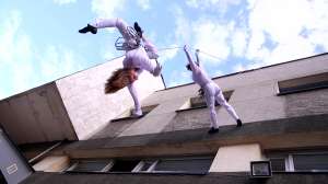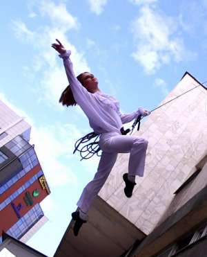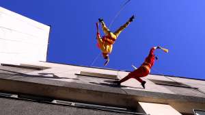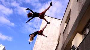 Пока единственный на территории России коллектив, почти все номера которого исполняются на отвесной стене здания. Порой кажется, что артисты летают по воздуху подобно птицам. Такое необычное представление хорошо видно даже очень большому количеству зрителей. В 30-минутной программе - оригинальные танцевальные постановки, элегантные воздушные номера, а также воссозданная легенда иллюзионного жанра "Побег из смирительной рубашки", прославившая в свое время Гарри Гудини. Ныне этот трюк исполняет руководитель коллектива, который на рискованной высоте освобождается из смирительной рубашки, повиснув вниз головой и зацепившись только стопами ног за веревку.