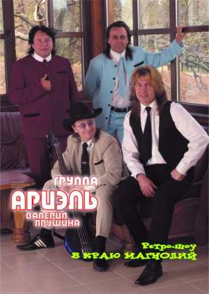 ВИА "АРИЭЛЬ" исполняет программу всенародно известных ретро-шлягеров "золотого периода 70х-80х" из авторского репертуара, песни: В Краю Магнолий, На Острове Буяне, Зимы и Весны, Заповедные Места, Старая Пластинка, Песенка Извозчика, Порушка-Пораня, Комната Смеха, и многие другие хиты...