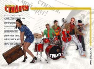 Группа "Стиляги" была создана в начале 2008 года композитором и поэтом Сергеем Ширяевым.В отличие ото всех "клонов", группа "Стиляги" изначально создавалась как авторский проект, все песни которого никогда прежде не исполнялись (за исключением песни "Только раз", в основу которой положен старинный русский романс). Многочисленные группы-клоны, появившиеся сразу после выхода одноименного фильма, создавались как кавер-команды, незаконно перепевающие чужие песни и поэтому конкурентами группы "Стиляги" считаться не могут. Группа "Стиляги" возникла задолго до выхода фильма, поэтому говорить о каком-либо подражании не приходится.В состав группы входит полноценная команда музыкантов, обеспечивающих высосоклассное концертное звучание на любой площадке. Все инструменты звучат только вживую, что было наглядно продемонстрировано в ходе выступления группы "Стиляги" на Красной площади 29 мая 2010 года, когда солист Сергей Ширяев прямо в ходе концерта потребовал от звукорежиссеров отстроить звук под живое выступление, а не под фонограмму.Состав группы - солисты Сергей Ширяев и Тамара Раманова, а также гитарист, бас-гитарист, клавишник, ударник. Примечательно, что за барабанами в группе работает уникальный виртуоз, "ударница" Катя Жило. Группа славится великолепным звучанием, зажигательными композициями и сумасшедшим драйвом, буквально "взрывающим" любую площадку. Продолжительность выступления группы "СТИЛЯГИ" - от 45 до 90 минут. Группа выезжает в составе 5-7 человек.