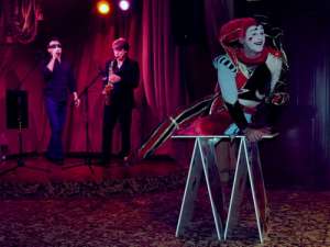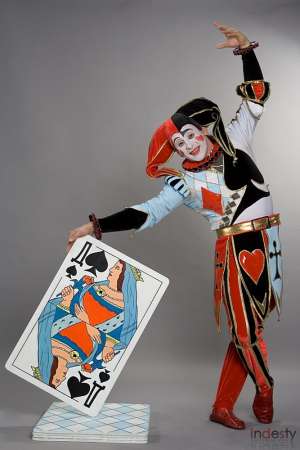 Забавный Джокер строит карточный дом, бесстрашно залезая, на ничем не закрепленные, конструкции из огромных карт, готовые развалиться в любой момент. А вдохновляет его изображение очаровательной пиковой Дамы,к которой он явно не равнодушен.Перед зрителями разыгрывается необычный "карточный" роман.Веселое и вместе с тем захватывающее шоу, которое вызывает смех и, одновременно,заставляет не на шутку поволноваться.