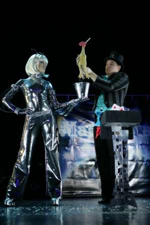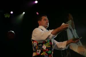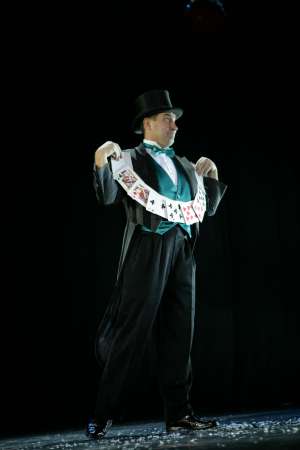 Выступление включает фокусы, манипуляции с небольшими предметами (вкючая элементы левитации, исчезновение и появление всевозможных предметов: карты, свечи, монеты ... ). обязательный интерактив со зрителем.
