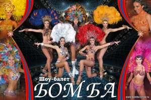 Шоу-балет «БОМБА» - профессиональный танцевальный коллектив. Основное направление и жанр, в котором работают артисты - Бразильский карнавал и латиноамериканская программа.Все самые яркие краски Латинской Америки, зажигательные ритмы, темперамент, темп, динамика, вихрь эмоций и энергия солнца, характер и горячее сердце – это шоу «БОМБА». Коллектив основан в декабре 2004года. За время существования шоу-балет «БОМБА» имел возможность выступать на многочисленных концертных площадках в Москве и в регионах Российской Федерации. Шоу-балет «Бомба» - это на 100% гарантируемая атмосфера карнавала!!!Продолжительность стандартной программы шоу-балета «Бомба» - 35 минут.Стандартная программа выстроена в режиме нон-стоп без пауз. За время выступления в шоу проходит 7 номеров. На каждый номер новые костюмы, новые краски! Массовые зрелищные номера чередуются с сольными. 3-4 номера из программы включают интерактивное общение со зрителями.В отдельных случаях возможен вариант разделения стандартной программы на 2 отделения.Состав от 3 до 10 артисток Продолжительность танцевальной школы шоу-балета «Бомба» - 15 мин.В школе танцев участвуют все зрители! Вместе с артистками шоу все гости разучивают энергичные движения, и кульминацией танцевальной школы становится выбор Королевы и Короля самбы, как на Карнавале в Рио-де-Жанейро!В программу могут быть включены бальные номера, фокус, школа танцев вместе с шоу-балетом. Также коллектив принимает участие в -Выставках -Раусах (встрече гостей)-Подтанцовки артистам эстрады -Награждение премий титулов -Группа поддержки спортсменам -Съемки на ТВ-Съемки в кино-Дефиле (участие в показах мод)-Go-Go (Гоу-гоу)