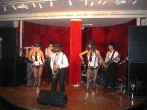 Большой состав - клавиши, саксофон, бас-гитара, гитара, ударные, вокалистка, 2-е танцовщицы.