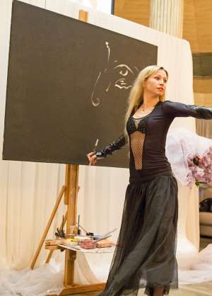 Уникальное шоу!!! Сплав живописи и хореаграфии. Под музыку на глазах зрителей художник рисует картину в ярком, динамичном, экспрессивном танце, совершая сложные па и даже прыжки.За считанные минуты из ярких штрихов на холсте возникают узнаваемые образы - Юрий Гагарин, Мерлин Монро, Джон Ленон, Юрий Никулин и многие другие известные лица. Или же это могут быть не менее известные башни Кремля, Исаакиевский Собор, Статуя Свободы, Прадо, да вообще почти все, что вам захотелось бы увидеть.Фееричный перфоманс, картина в стиле арт-модерн или поп-арт сделает любое событие ярким и выделит его в череде других.