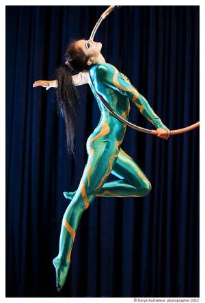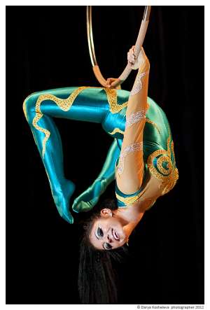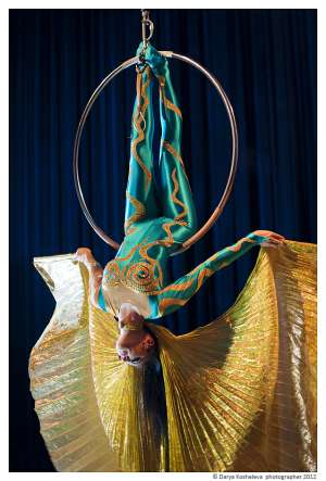 воздушная гимнастка яна покажет вам не только невероятные захватывающие трюки в воздухе, но так же завораживающий танец и пластику тела внизу.