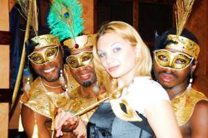 ДИКАЯ АФРИКА – LUXURY AFRICA! Ночь пронизанная духом «черного» континента! Вас ждут незабываемые музыкальные ритмы африканских племен, звуки тамтамов с игрой на барабанах, ритуальные песнопения, древние шаманские обряды, оригинальные театральные представления, ну, и, конечно же, темпераментные танцы копьеносцев под африканскую музыку в театрализованном представлении, где бурлят не шуточные сражение со страстными и ненасытными амазонками - "стриптизершами". Шоу программа сопровождается задорным мастер-классом со зрителями и конкурсами на фоне экзотических декораций и разнообразных животных Африки! Мужчины, почувствуйте себя первобытными охотниками. Милые дамы, примите участие в конкурсе на звание лучшей из "белого" племени. Для любителей ночной экзотики – эротическое шоу от чернокожей красавицы.