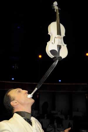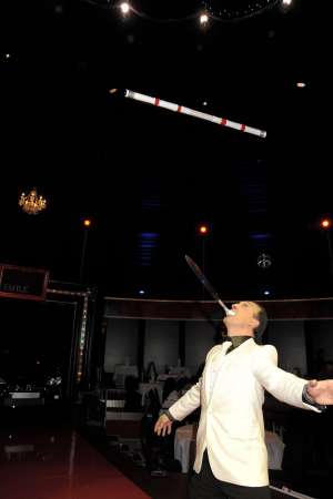 бАЛАНС и жонглирование предметов одним ножом - который держиться зубами во рту.Предметы- (вазы мячи палки)Балланс одной рукой палку палкой который ставиться торец в торец -баллансируеться ! подкидываеться!- палка делает сальто мортале и ловиться на конец другой палки.ФИНАЛЬНЫЙ ТРЮК --на одной ноге баллансируеться палка подкидываеться в верх под купол цирка или арены палка делает несколько оборотов летит вниз и ловиться на лезвие ножа-который держиться ртом зубами----единственный исполнитель на сегодняшний день!!!!!!!ОЧЕНЬ ЭФЕКТНЫЙ ЭНЕРГИЧНЫЙ И ДИНАМИЧНЫЙ НОМЕР.148 Sandhill street, Worksop NOTTS. ENGLAND S80 2LX