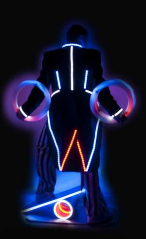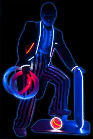 1. Жонглер на катушке длительность (5:40 мин.) исполняется на трюковом пьедестале. Номер является смешением нескольких жанров – эквилибристика на катушке, современного ритмичного танца в стиле “Street Jazz” и жонглирования с исполнением сложных трюков (8 колец на катушке, 6 колец на катушке с балансом, 5 колец с пол пируэтом на катушке). Возможно работать как на больших площадках так и в небольших варьете.