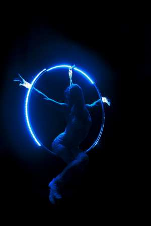 3. Воздух длительность (5 мин.). Номер эффектен, исполняется на большой высоте, динамичен. Сложные трюки исполняются в каче и вращение кольца, чередуясь с падениями и спусками. Минимальная подвеска и мобильный реквизит.