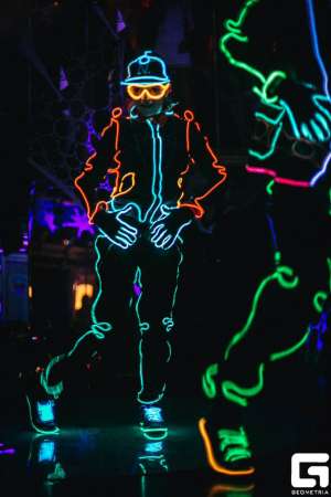 Мы творим настоящую магию света в темноте.Neonshow project - это только высокотехнологичные выступления, не имеющие аналогов в России.В нашей технической лаборатории творятся настоящие чудеса для того, чтобы наши выступления были яркими и запоминающимися."Вперёд в прошлое" - программа на 10 минут, это история световых перевоплощений наших персонажей в звёзд мирового кинематографа и сцены. Перед зрителями предстаяют неоновые Мерлин Монро, Элвис Пресли, Майкл Джексон, Кристина Агиллера и другие звезды.Состав: минимально - 3 артиста, полный состав - 6 артистов."Шёпот тишины" - полная программа - 20 минут (полноценный световой спектакль), номер - 10 минут. Это философско-мистическая притча о борьбе Добра и Зла с участием духов древних Воинов, Скелетов, Ангела и Шамана.Состав: минимальный (номер) - 4 артиста, полный состав номера - 8 артистов; световой спектакль - 10 артистов.Мы говорим со зрителем на языке музыки и танца, добавляем игру света и получаем волшебство!