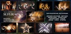 - Наземные пиротехнические инсталляции: дорожки фонтанов, вертушки, пиротехнические фигуры, огнепад, логотипы, пиротехнические инициалы и сердца